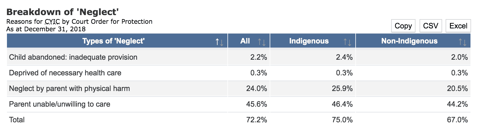 In a system where Indigenous kids are grossly overrepresented due to the ongoing impacts of colonial policies and intergenerational trauma, fully three quarters of Indigenous kids in care in B.C. were apprehended because of “neglect.”