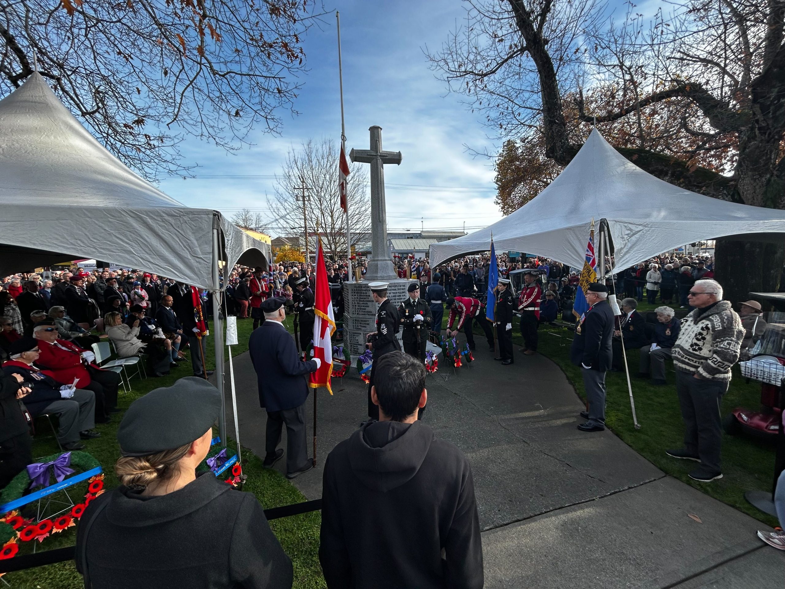The Cowichan Valley fell silent this Remembrance Day, Nov. 11, as hundreds of people gathered in Charles Hoey Park in Duncan for a ceremony and wreath laying to honour Canada’s living and fallen veterans.