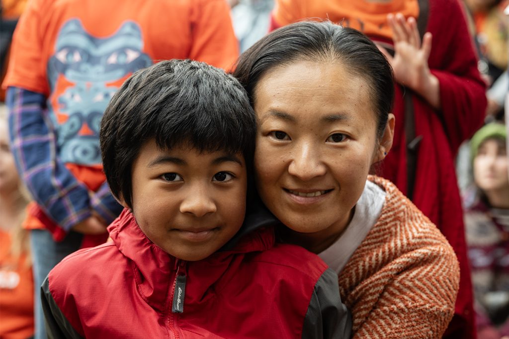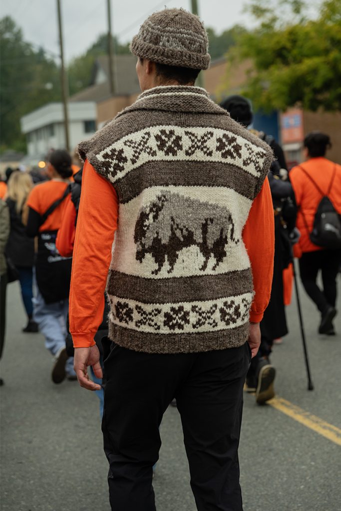 “We’re still here as Indian people, we’re still here still living our culture!” said a man, whose Dakota name translates to Circling Buffalo, to thunderous cheers by thousands of people wearing orange at the Every Child Matters march on Quw’utsun lands on Tuesday, Sept. 30.