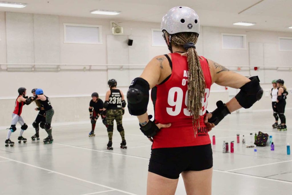 Monica Arthurs, 51, is the president of the Cowichan Valley Roller Derby Association and one of the coaches of the Brass Knuckle Derby Dames. She also goes by her derby name, Angel O’Deth. She lives in Crofton, and in her day job she’s a carpenter.