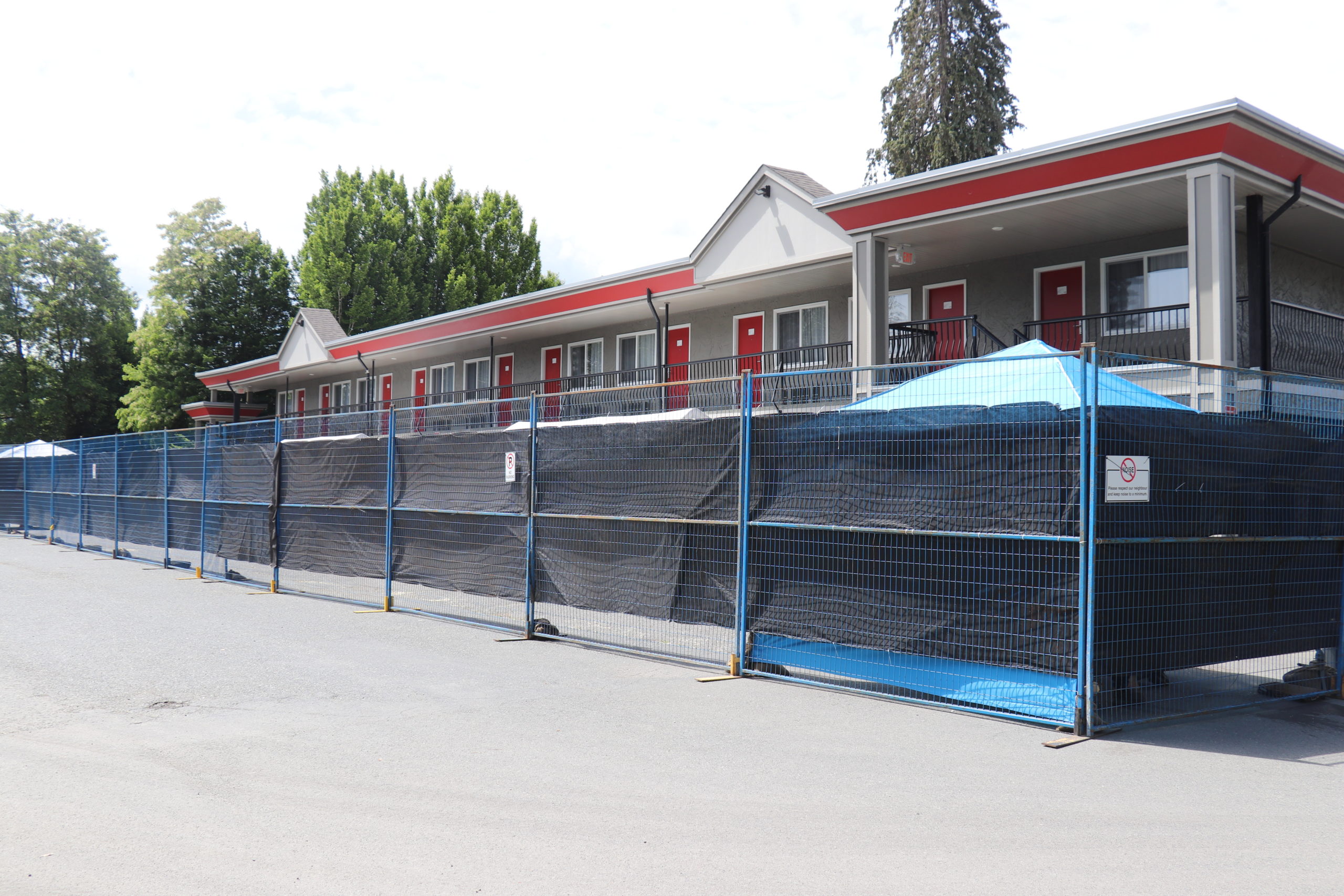 There are 34 hotel rooms at the Ramada, 32 of which are being used as temporary housing. One room is for Blackbird Security personnel, who keep an eye on things, including in the fenced area where meals are served and residents congregate at several covered picnic tables. The other room is used as a staging area by task force staff.