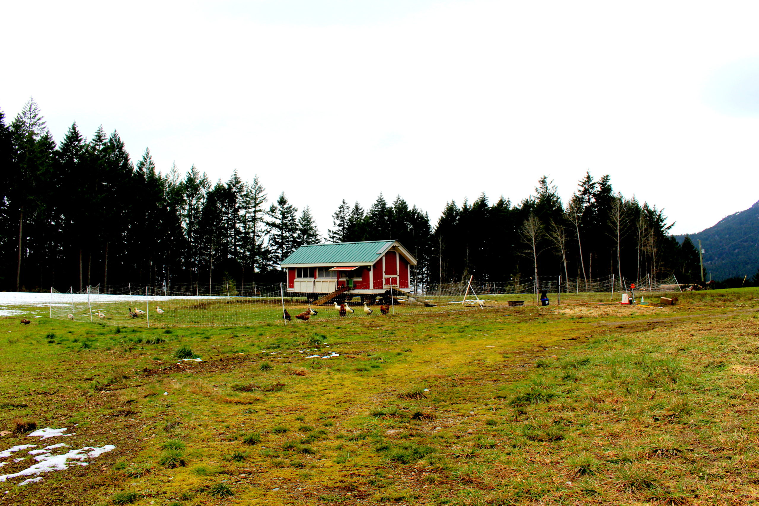 Just outside her home, there is the mobile chicken coop. Young moves it every couple of weeks to a new pasture area so the chickens can control weeds and insects.