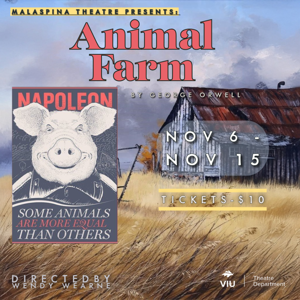 Thursday, Nov. 6 to Saturday Nov. 15, various times: Malapsina Theatre presents George Orwell’s Animal Farm at the Malapsina Theatre. Tickets cost $10 or are free for VIU students and staff with ID.