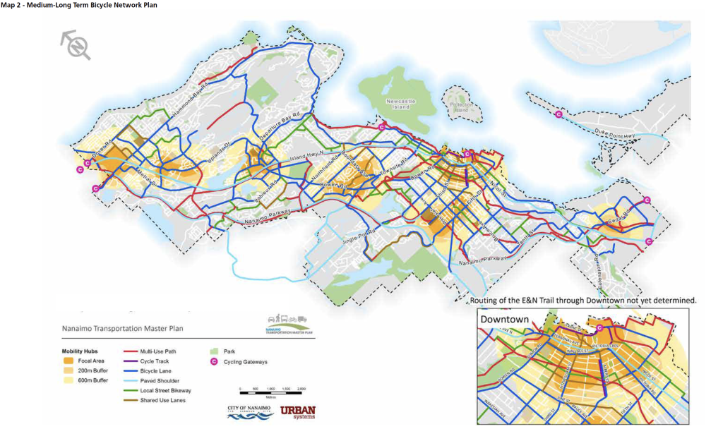 The Nanaimo Transportation Master Plan was adopted in 2014 to guide the city with goals to improve roadways, increase transit accessibility and make walking and cycling a more comfortable way for people of all ages and abilities to move through the city.