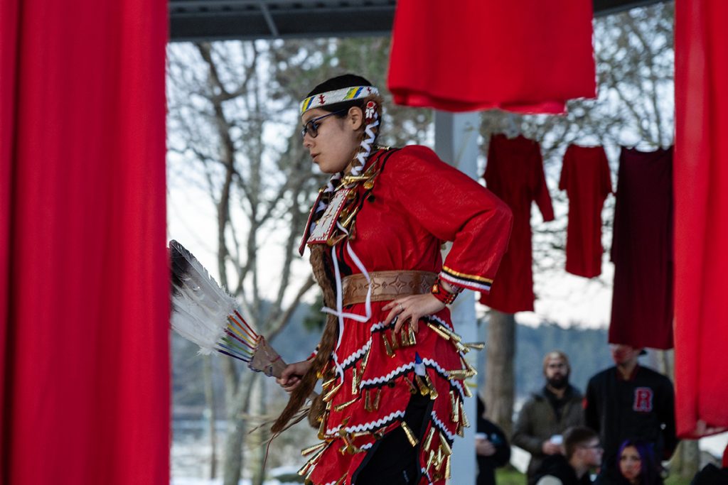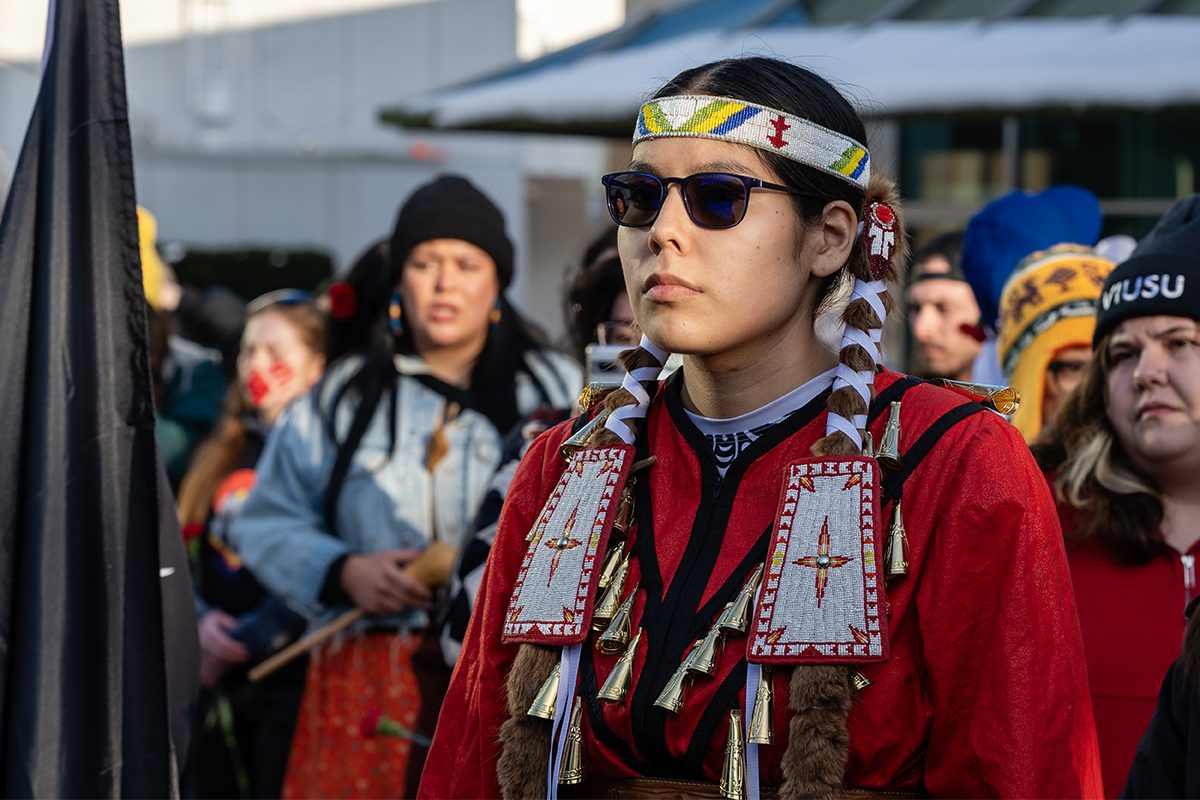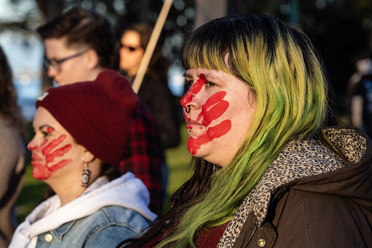 This year’s Nanaimo march for MMIWG2S+ was organized by the Vancouver Island University Student Union and spearheaded by its Indigenous representative Leah Vaisanen, who is from the Łı́ı́dlı̨ı̨ Kų́ę́ First Nation near Fort Simpson in the Northwest Territories and is of Dene and Vietnamese descent.