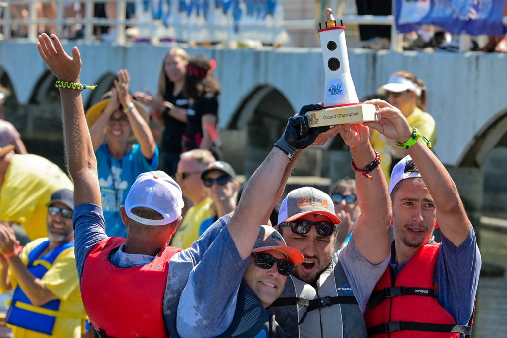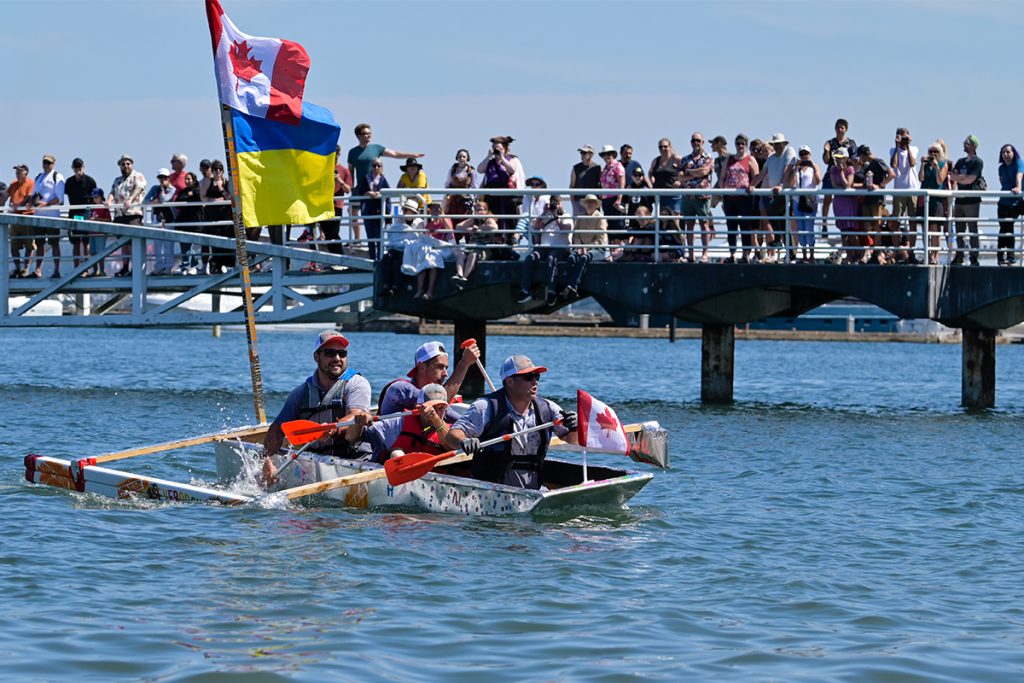 The winner of this year’s race was the Aarsen Gutters team, whose boat was made out of wood, aluminum and drainpipes and flew both a Canadian and Ukrainian flag.