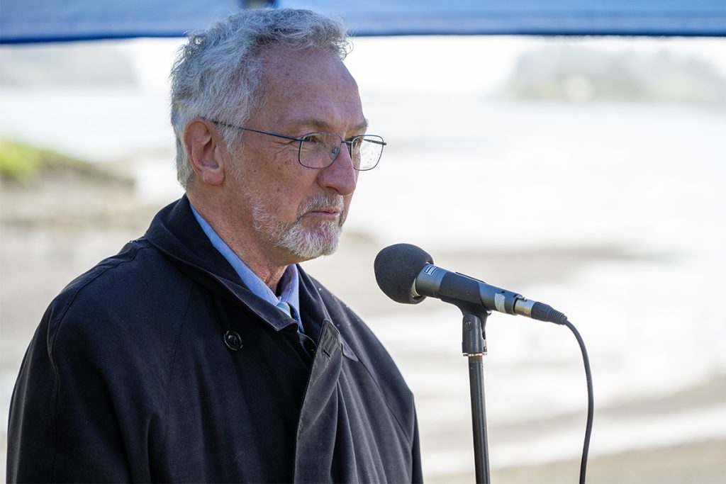 Mayor Leonard Krog spoke to the small crowd ahead of the tree-planting ceremony saying he was proud of the work that Young’s family and friends have done to keep her case in the spotlight.