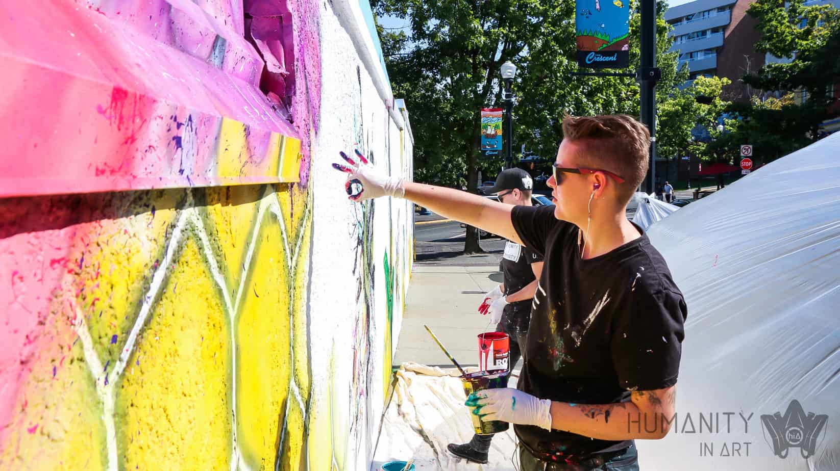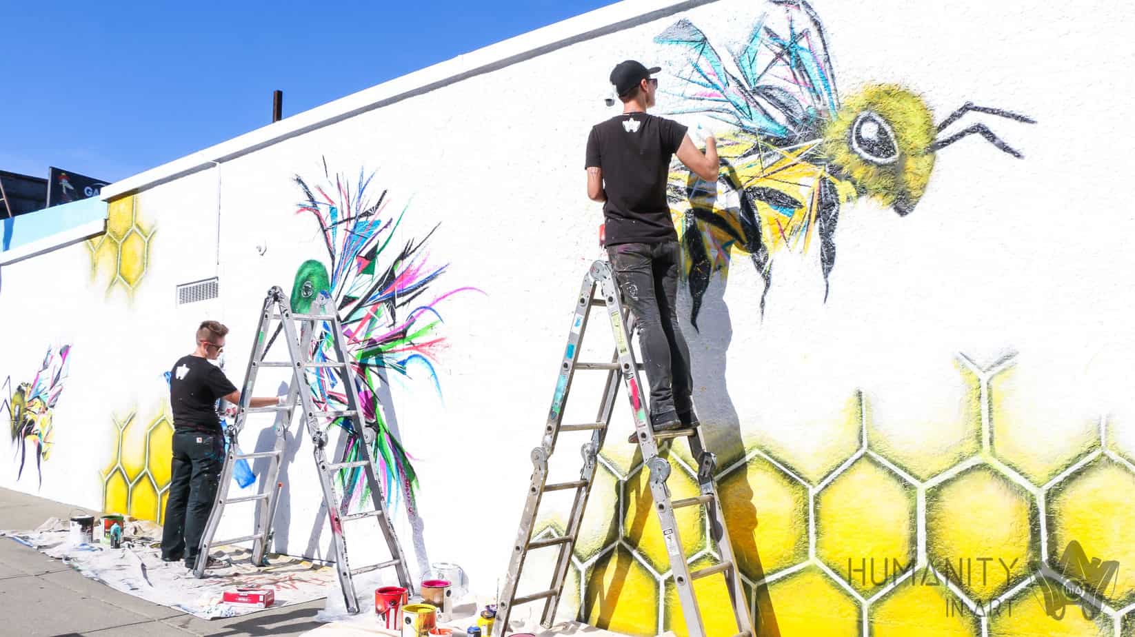 After securing permission from the building’s owner, they began to fundraise for paint and supplies as part of their non-profit Humanity in Community collective. After raising $10,000 and conducting a swift artist selection process, the group spent five months covering the building in murals.