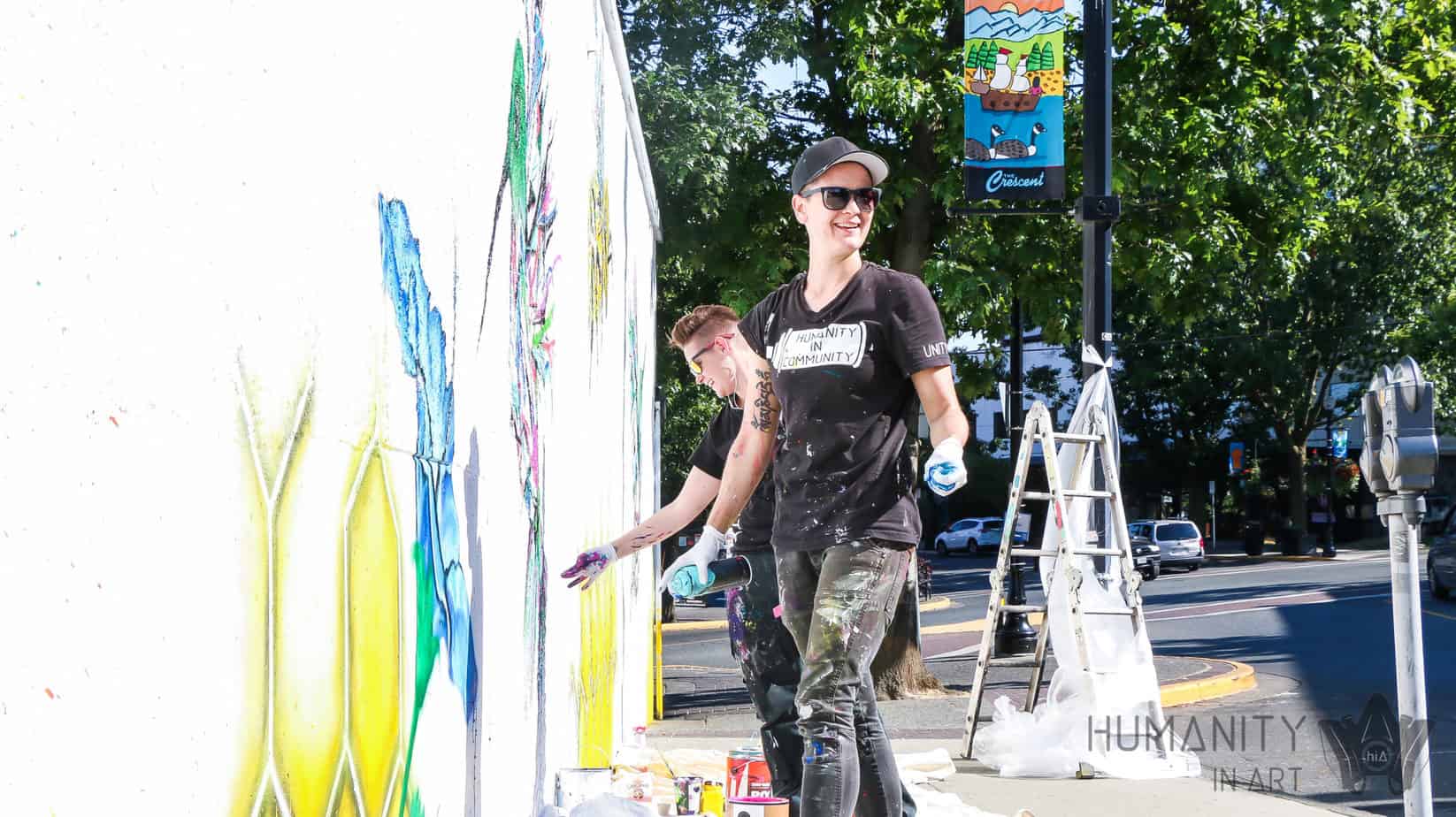 Local artist Lauren Semple said that it was around this time that she was hanging out and looking at the building when her partner Lys Glassford, also an artist, remarked that they’d love to paint the side of the building.