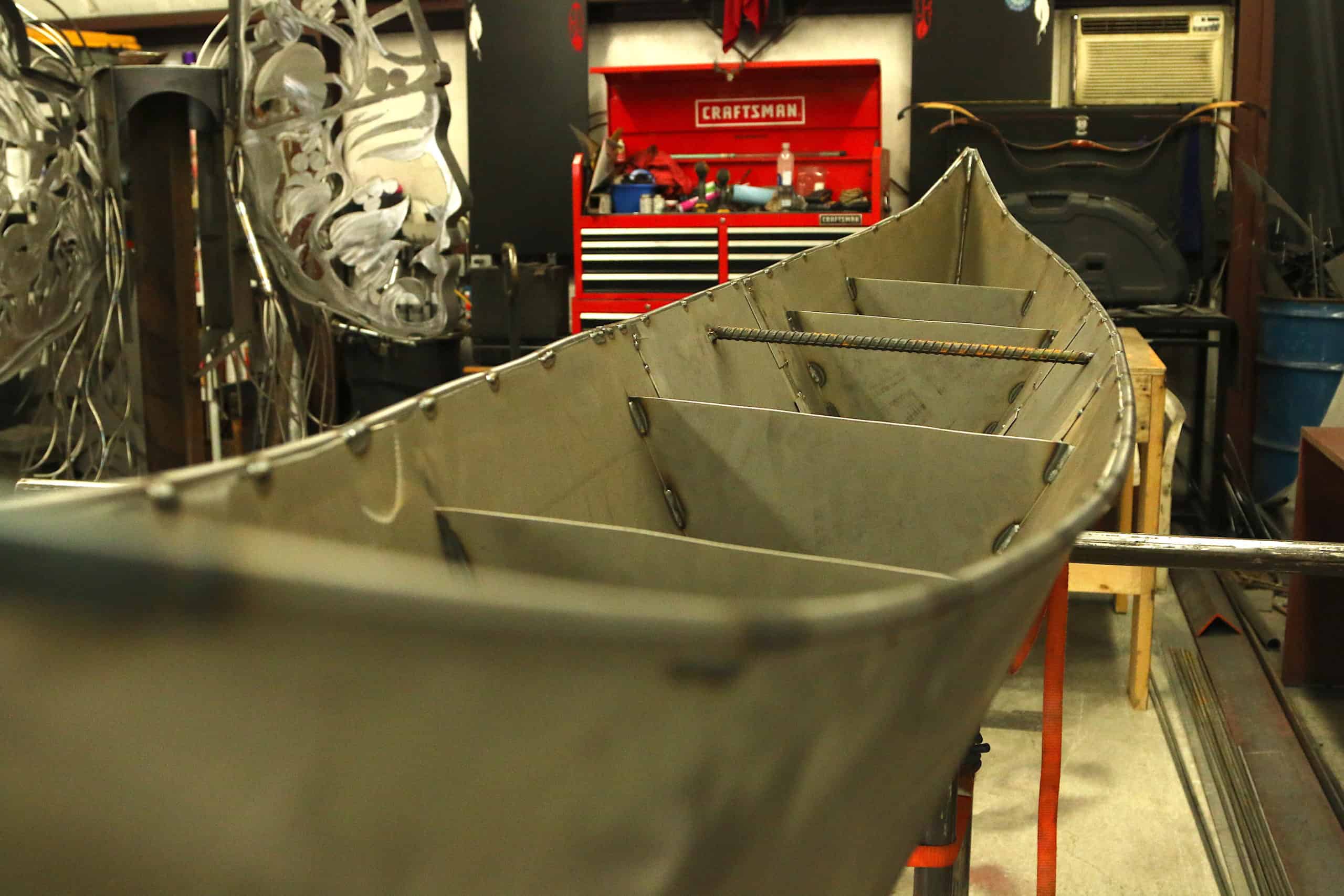 George says the steel canoe represents how Okanagan/Syilx people would fish, hunt and gather thousands of years ago in the Winfield area.