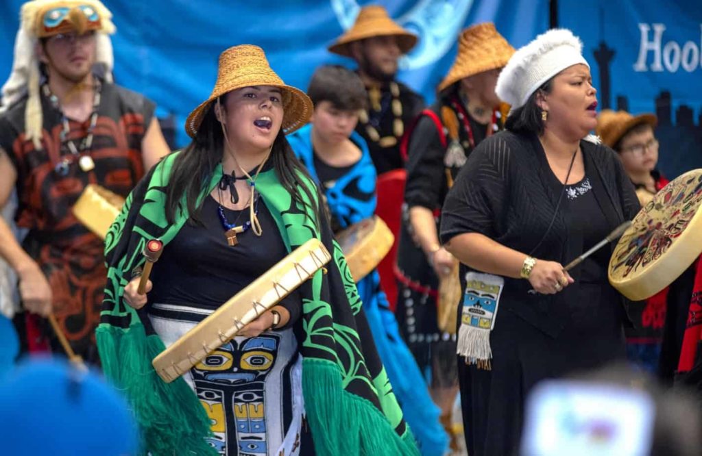 The annual celebration historically took place in the Nass Valley in northern B.C. but as Nisga’a citizens moved to cities along with other Indigenous people, they brought traditions like Hobiyee with them.