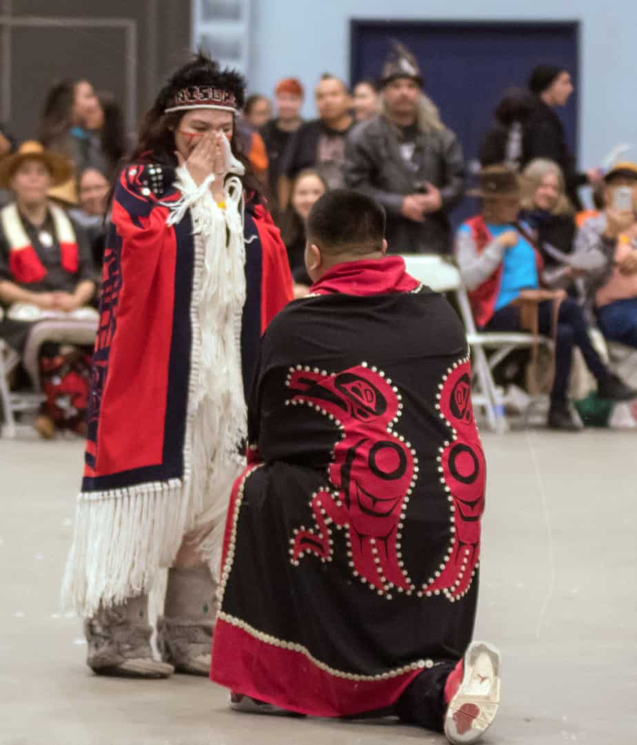Though it is a Nisga’a tradition, the event now brings together other Indigenous groups from across the city’s mosaic of urban First Nations, especially since some people adopt the traditions of other nations if they find themselves disconnected from their own homelands. Rather than relinquish their Indigeneity, some adopt each other’s protocols as a cultural surrogate for their own traditions.