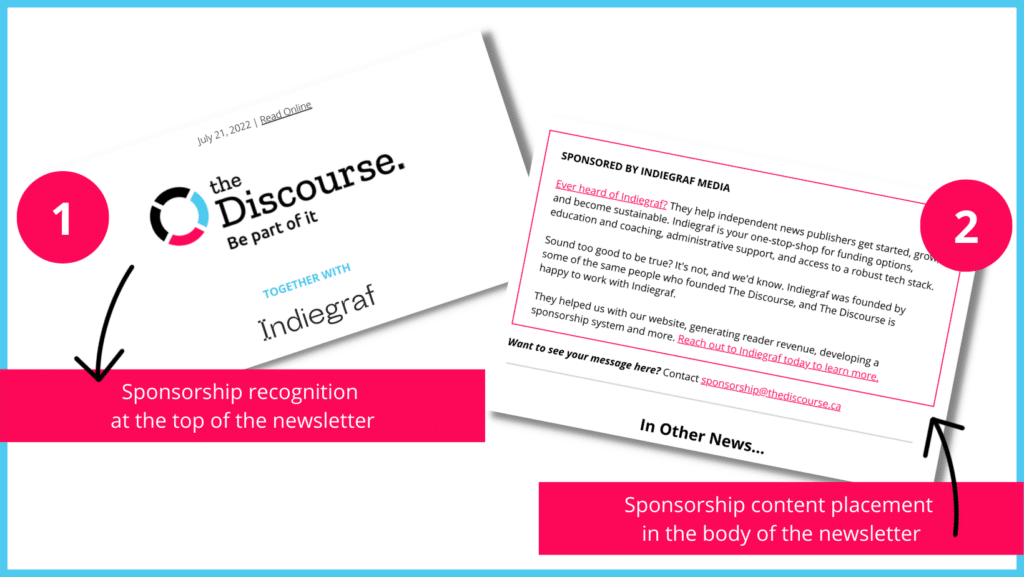 To discuss rates and learn more about exclusive newsletter sponsorship opportunities with The Discourse send an email to sponsorship@thediscourse.ca