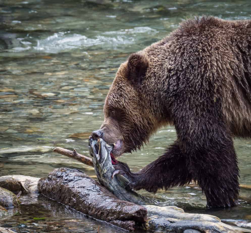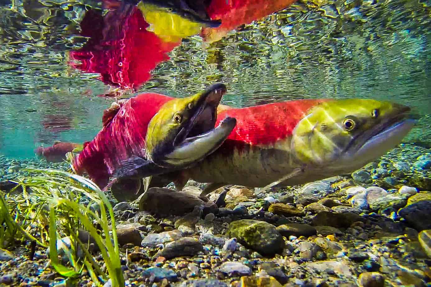 In 2015, Ross and other scientists estimated that juvenile salmon in coastal B.C. consume two to seven microplastic particles per day inside the zooplankton they eat. Sockeye salmon swimming into the coast from the North Pacific could also transfer any plastic in their system to the grizzly bears who eat them, says Ross.
