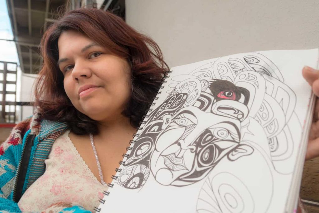 Across the Burrard Inlet in an East Vancouver coffee shop, Nisga’a artist Haisla Collins is sketching pictures of artwork she hopes to create soon.