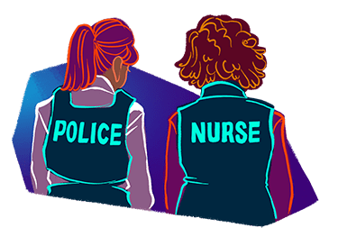 In addition to the two or three officers who regularly work on the Car 60 team, officers not assigned to the program have opportunities to learn from the team and its nurses, too. “We’ve all been on calls where the Car 60 program and the nurses are attending,” Swain says. “Now we go on calls and we maybe ask some of the questions the nurse might ask, or try and obtain that information in another means, to help us form some sort of assessment or decision for that person. I think that would be beneficial for sure, rather than just that black-and-white, ’Okay you’re this, now we’re doing this.’”