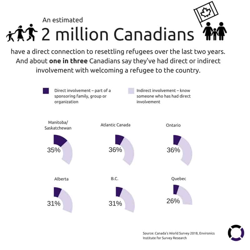Drawing from what the respondents said, the survey estimates that two million adult Canadians were involved directly in the sponsorship of refugees, with another seven million who knew someone who did.